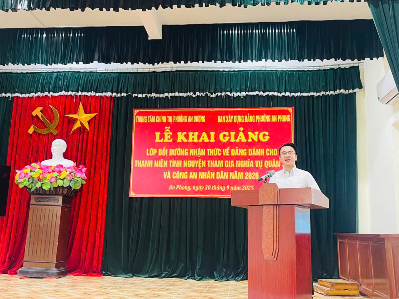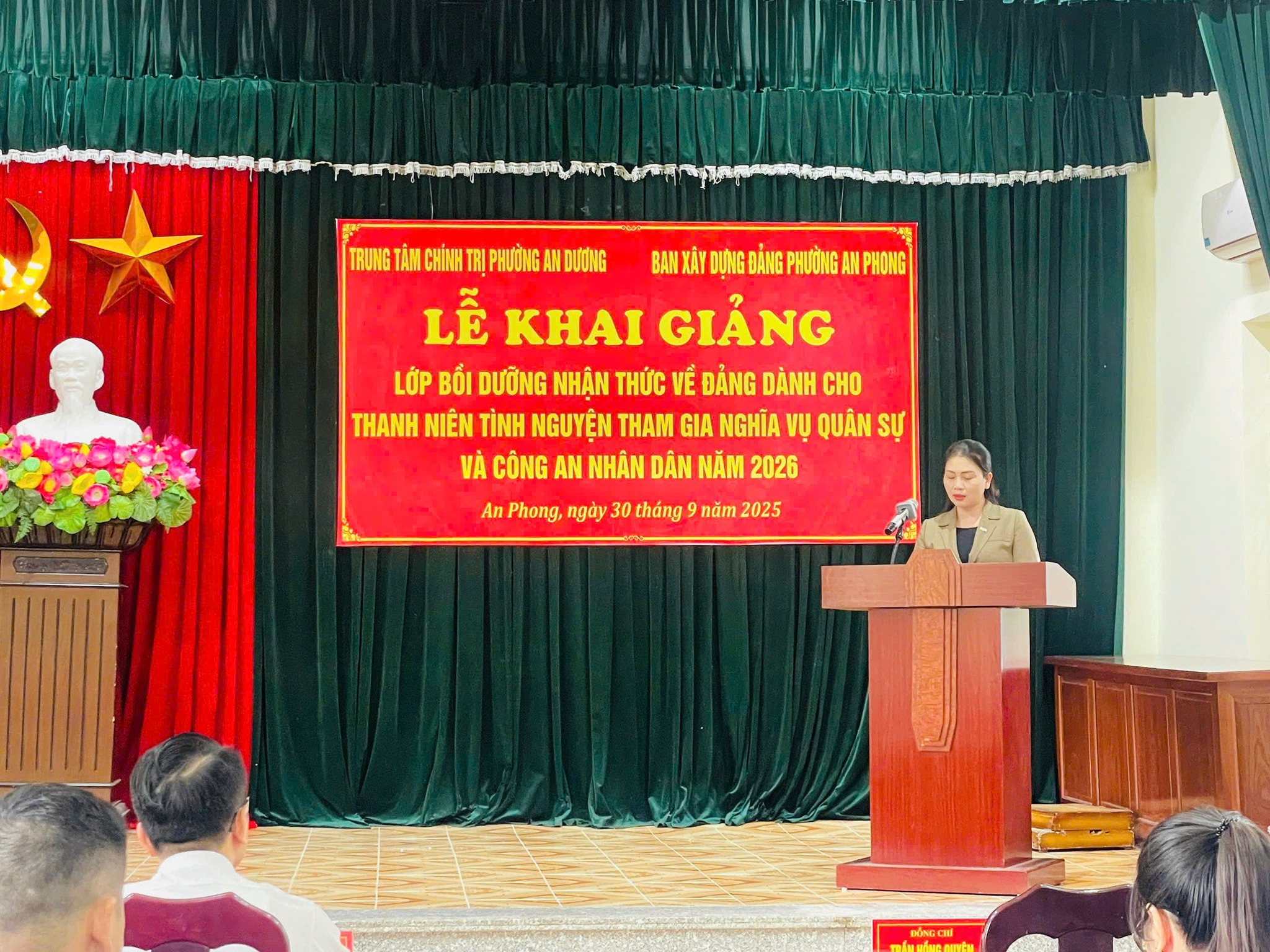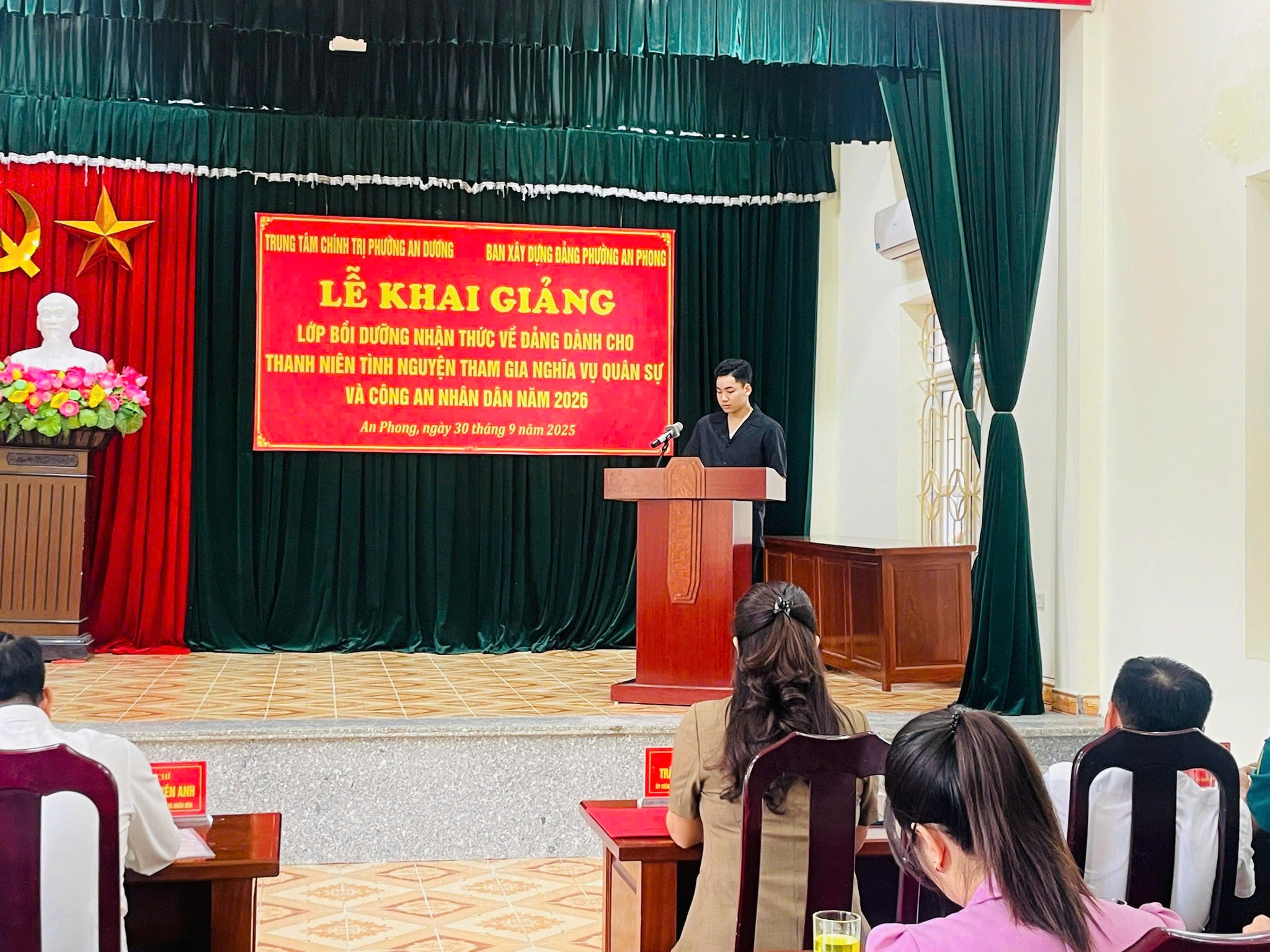 Sáng 30/9/2025, Ban Thường vụ Đảng ủy phường đã tổ chức Lễ khai giảng lớp Bồi dưỡng nhận thức về Đảng dành cho thanh niên tình nguyện tham gia nghĩa vụ Quân sự, Công an nhân dân năm 2026 và quần chúng ưu tú đang sinh sống, làm việc trên địa bàn phường.